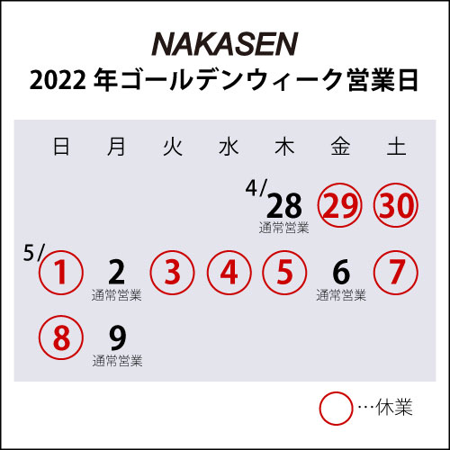 > 2022年GW期間中の営業日のお知らせ 2022/04/20(水)