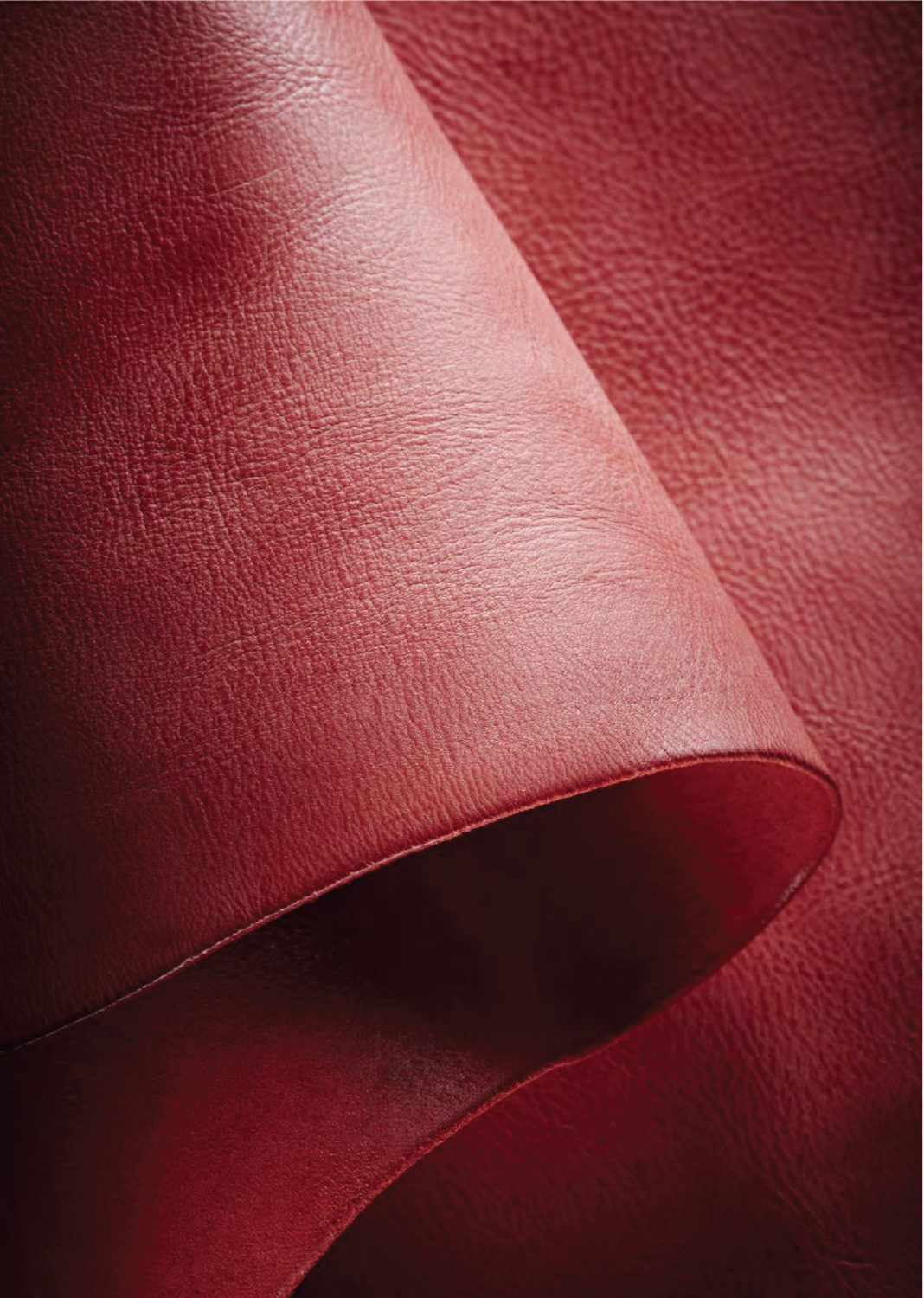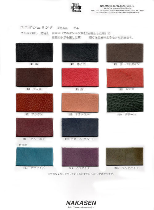 ロロマ(フルタンニン革を2回鞣しした革)に自然のシボを出した革。